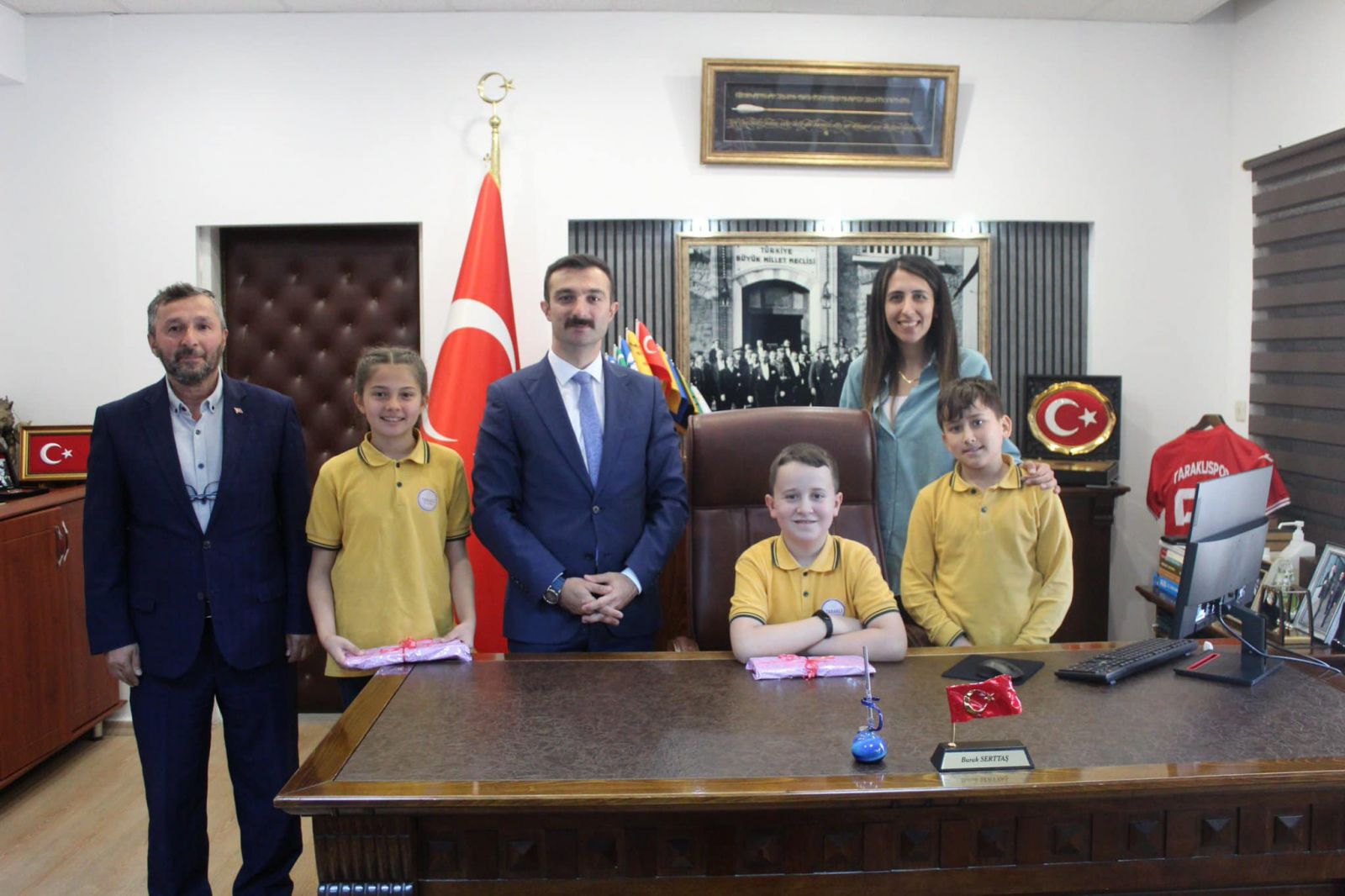 Bu anlamlı törende, Taraklı Kaymakamı Burak Serttaş, bayramın önemine vurgu yaparak koltuğu temsili olarak Taraklı Ortaokulu öğrencisi İsmail Taha Turan’a devretti.