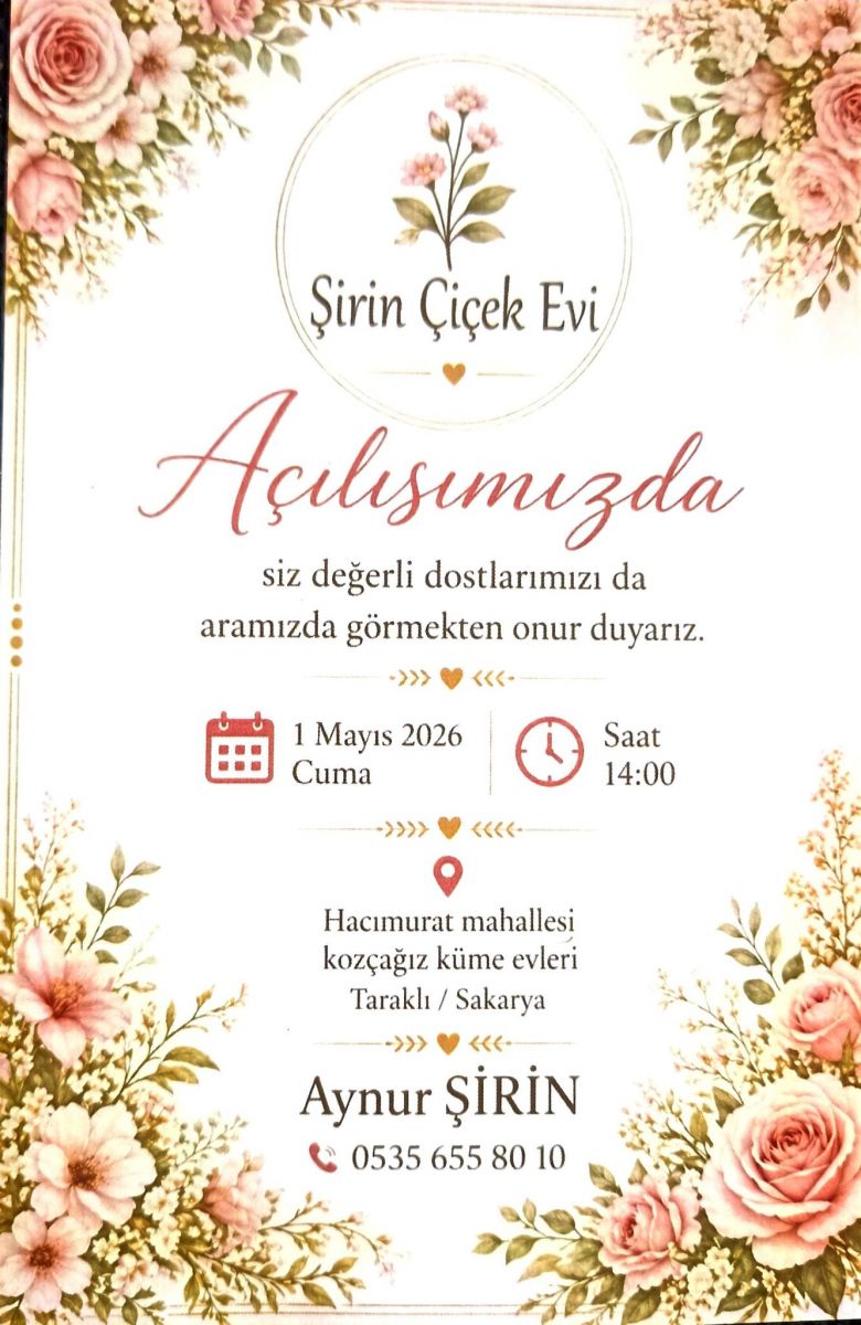 Taraklı’da önemli bir ihtiyacı karşılayacak yeni bir işletme daha hizmete giriyor. Genç girişimci Aynur Şirin tarafından hayata geçirilen Şirin Çiçek Evi, 1 Mayıs 2026 Cuma günü saat 14.00’te düzenlenecek törenle kapılarını açıyor.
