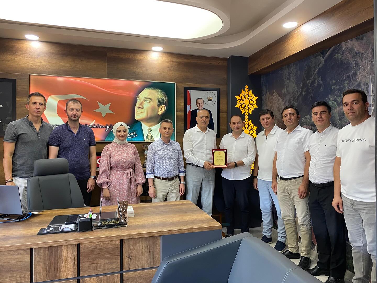 Adapazarı İlçe Milli Eğitim Müdürü Engin Kahraman, beraberinde Şube Müdürleri Ahmedlatif Şahin, Sedat Bezci, Önder Ürkmez ile Özel Büro görevlileri Metin Alma, Ömer Hacıoğlu, Sadık Pehlivan, Gözde Alşan ve Alparslan Akyüz ile birlikte Taraklı İlçe Milli Eğitim Müdürü Ahmet Kıvcı’yı makamında ziyaret etti.