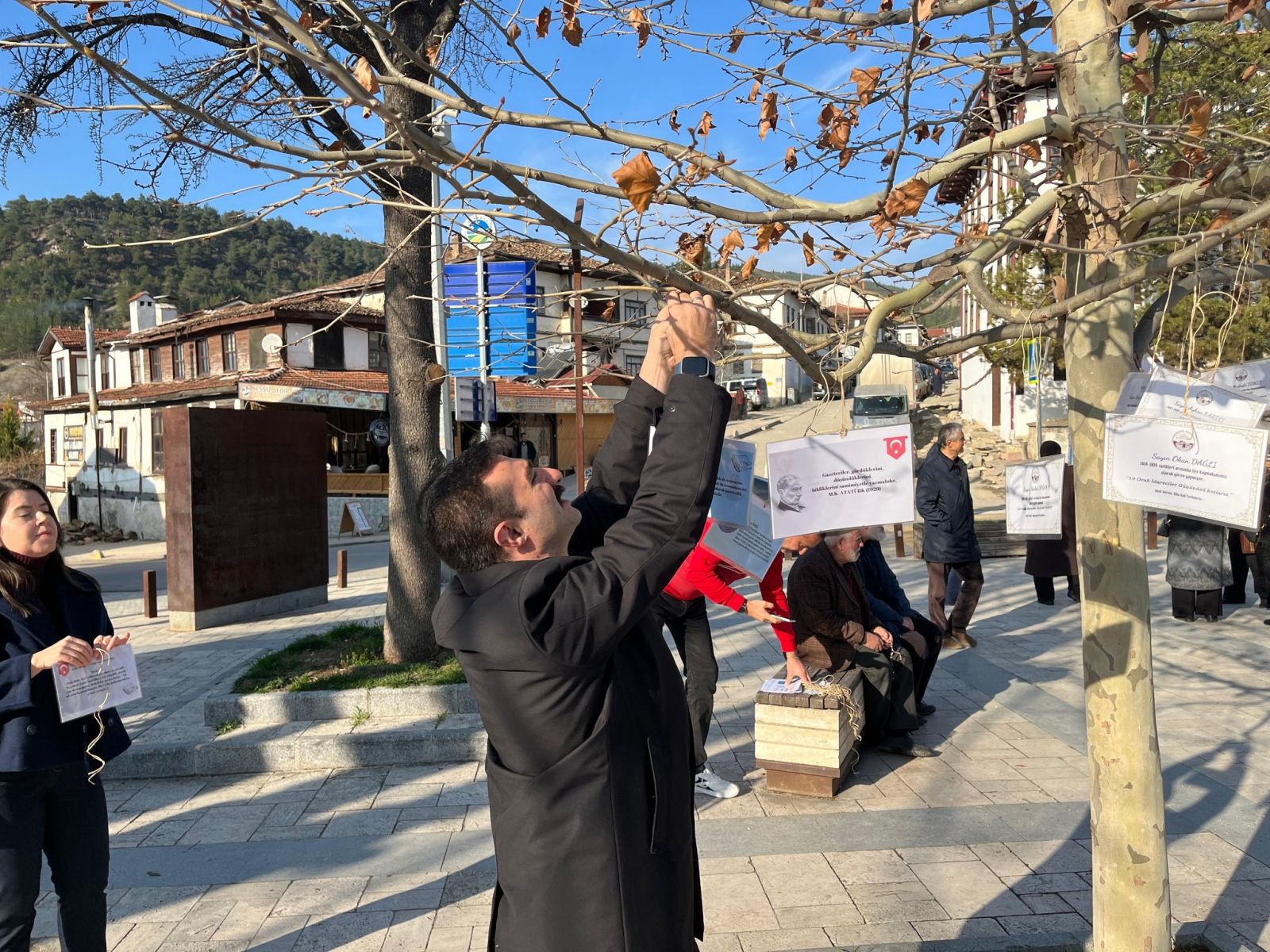 Etkinliğe, Kaymakam Burak Serttaş ve Halk Eğitim Merkezi Müdürü Timuçin Çetner'in yanı sıra, ilçede görev yapan gazeteciler de katıldı. Katılımcılar ve vatandaşlar, ağaca asılan dövizleri büyük bir ilgiyle inceledi