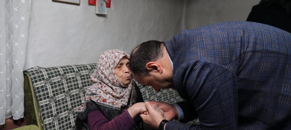Sakarya Valisi Çetin Oktay Kaldırım, Taraklı İlçesi Mahdumlar Mahallesi'nde 88 yaşındaki Mürvet Çağlar'ı evinde ziyaret etti