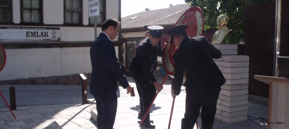 Kaymakam Halis Hacıismailoğlu ve Belediye Başkanı İbrahim Pilavcı’nın çelenk sunmasının ardından saygı duruşu ve İstiklal Marşı okundu.