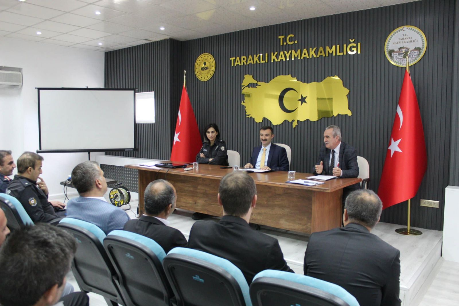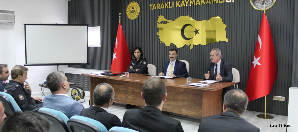 Toplantıda, ilçe genelindeki iş ve işlemlerin etkin bir şekilde yürütülmesi ve kamu kurumlarıyla koordinasyonunun sağlanması üzerinde duruldu.
