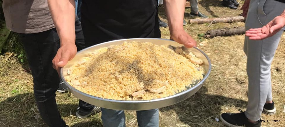 Taraklı İlçesi Akçapınar Mahallesi’n de çevre İl İlçe ve köylerden yüzlerce kişinin katıldığı hayır pilavında mahalle camiinde okunan mevlid-i şerifin ardından vatandaşlara bulgur pilavı ve ayran ikramı yapıldı