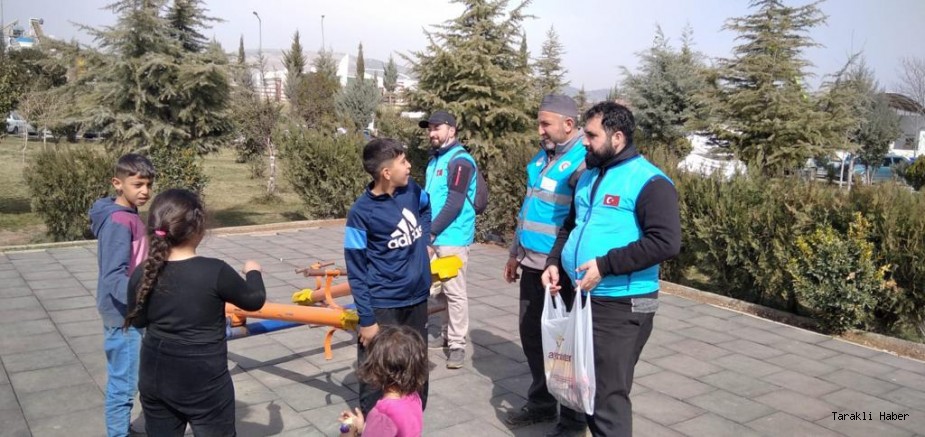 Taraklı ilçe Müftülüğü din görevlileri gönüllü olarak gittikleri deprem bölgesinde depremden etkilenen çocukların gönüllerine dokunuyorlar