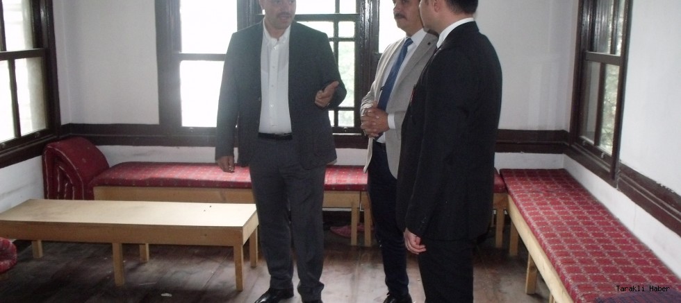 Vali Kaldırım, gelecek aylarda öğretmenevi olarak hizmete açılacak Tarihi Han'daki restorasyon çalışmalarını inceledi.