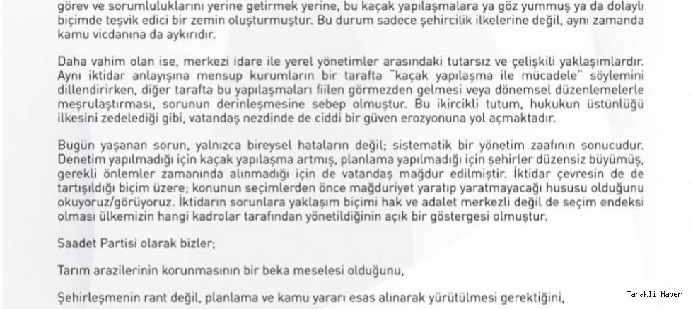 Saadet Partisi Sakarya İl Başkanı Ali Ahmet Çelik Basın açıklamasınde bulundu