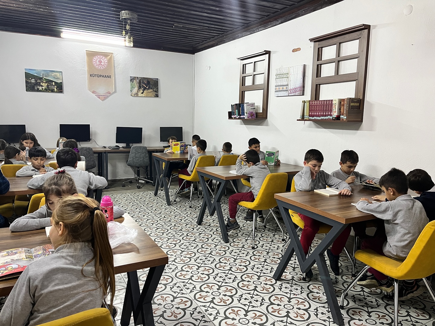 Kitap okuma etkinliğinde, öğrenciler çeşitli yaş ve ilgi gruplarına hitap eden kitaplardan seçerek, kütüphanede sessiz bir atmosferde kitaplarını okudular. Öğretmenler de öğrencilere rehberlik ederek, kitaplar hakkında sohbet etti ve okuma sevgisini daha da pekiştirecek önerilerde bulundu.