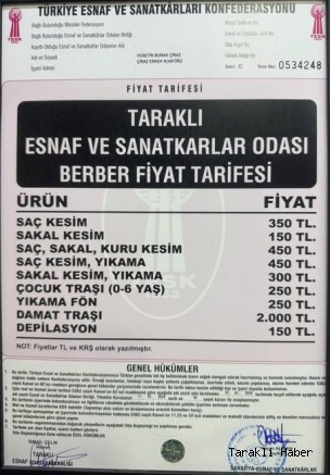 Sakarya'nın Taraklı ilçesinde berber ve kuaför hizmetlerine beklenen zam geldi. Taraklı Esnaf ve Sanatkârlar Odası tarafından hazırlanan yeni fiyat tarifesi, ilgili birliğin onayından geçerek resmen yürürlüğe girdi. Artan maliyetler göz önünde bulundurularak hazırlanan yeni liste, ilçedeki tüm berber esnafı için bağlayıcı olacak.