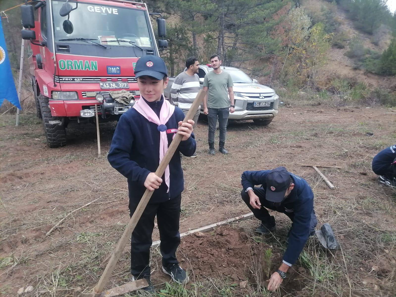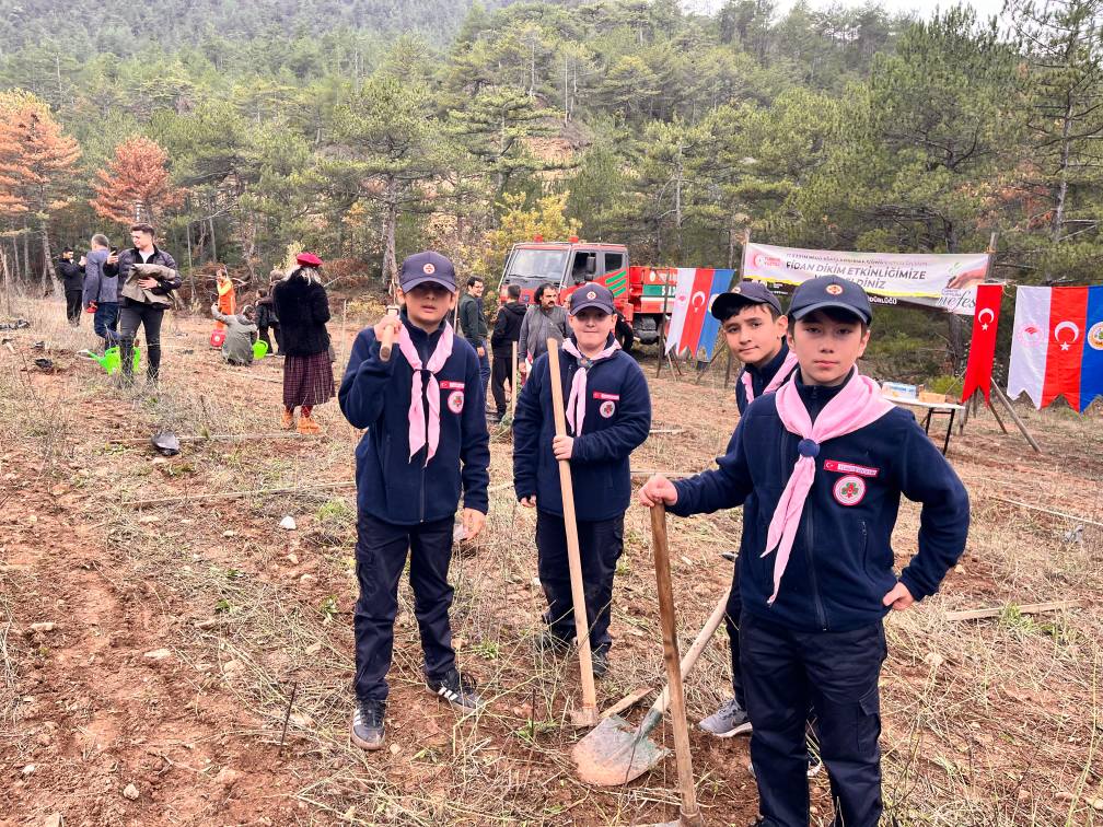 İzci lideri Saim Aşık öncülüğünde etkinliğe katılan izciler, fidan dikerek doğaya katkıda bulundu.