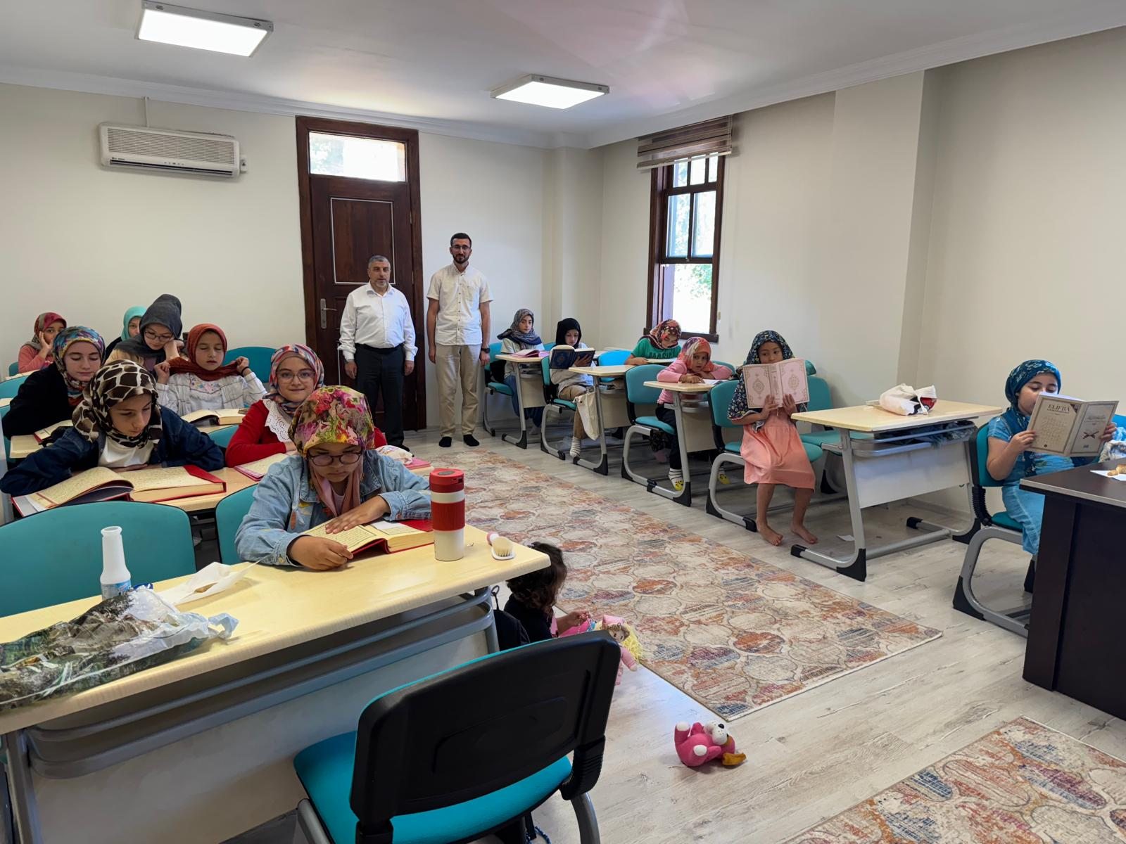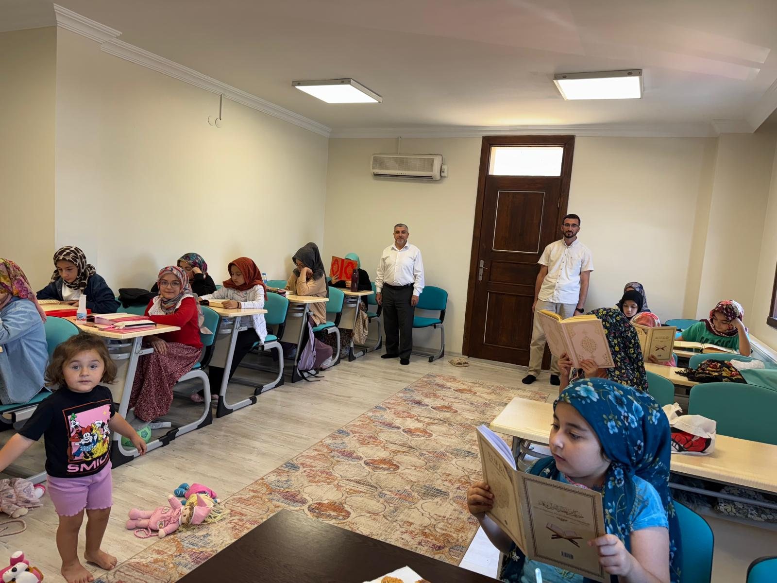 2025 yılı Yaz Kur’an Kursları kapsamında Taraklı’da eğitimler yoğun ilgiyle sürerken, Taraklı İlçe Müftüsü İhsan Kurt ve Vaiz Tanju Reis, ilçedeki kursları ziyaret etti. Merkez Kur’an Kursu ile Merkez 4-6 Yaş Kur’an Kursu’nu gezen Müftü Kurt ve Vaiz Reis, derslere katılarak öğrencilerle birebir ilgilendi, ders işleyişine katkı sundu.