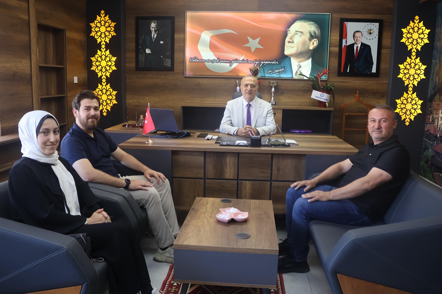 AK Parti Taraklı İlçe Başkanı Mustafa Özen Taraklı İlçe Milli Eğitim Müdürlüğü görevine başlayan Ahmet Kıvcı’ya hayırlı olsun ziyaretinde bulundu. Ziyaret sırasında Kadın Kolları Başkanımız Beyza Çağlar ve Gençlik Kolları Başkanı Ali Rıza Arvasi de hazır bulundu.