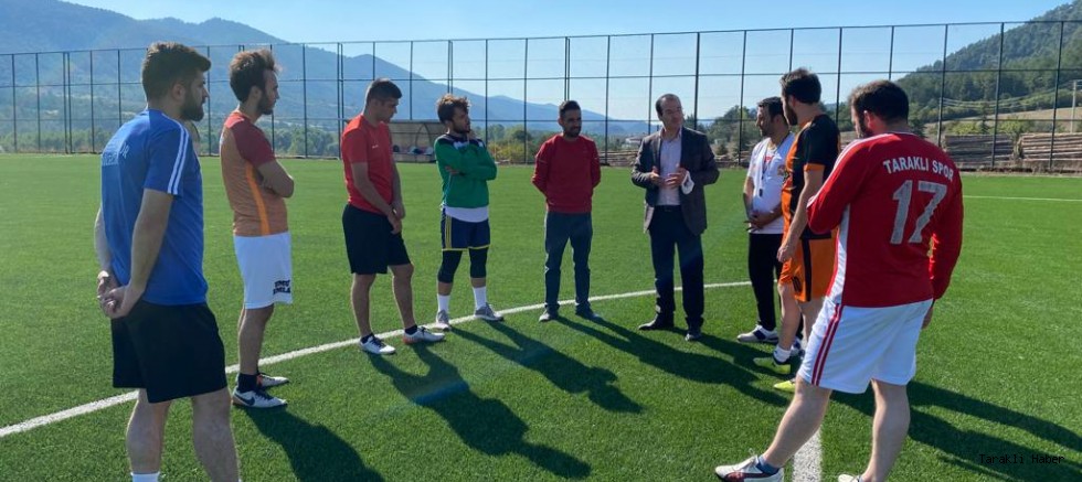 Öztürk ve Özkul Taraklıspor idmanı sonrasında Antrenör Turgay Özen ve futbolcularla sohbete ederek başarılar dilediler.